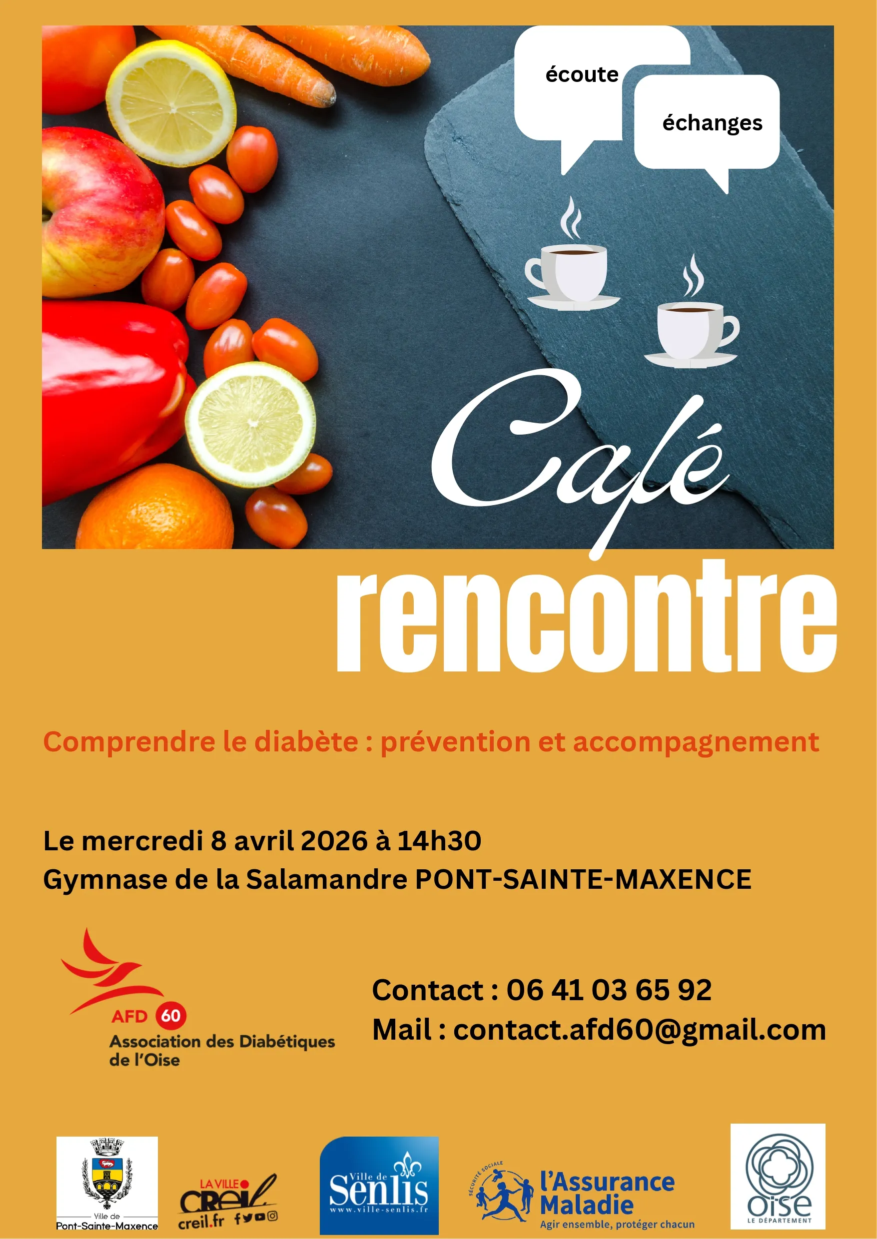 L’association des diabétiques de l’Oise organise un café rencontre, le mercredi 8 avril à 14h30 au gymnase la Salamandre. Une façon conviviale de mieux comprendre le diabète.